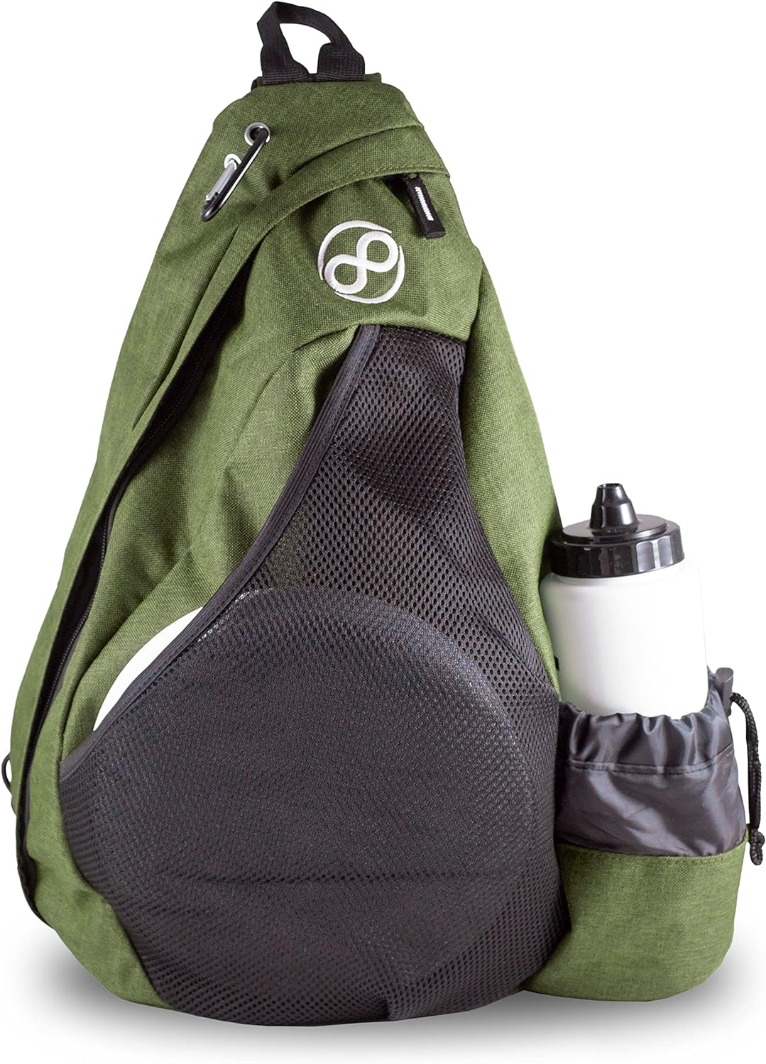 The Infinite Discs Slinger Deluxe bag is an upgraded version of the very popular Infinite Discs Slinger. The bag is made with a durable, long-lasting material with embroidered logos. It adds a carabiner that can be used to attach your towel or bag tags, and has zipper pulls. There is also an improved bottom to help the bag stand upright when set on the ground. But most of all, the disc capacity has been increased so that you can comfortably carry 12-14 discs.
